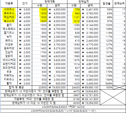엑셀 조건 평균 (SUMIF, COUNTIF) |