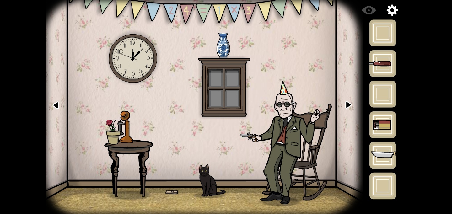데일은 기계장치를 완성하고 파란 큐브를 얻어 미스터 래빗이 총을 들고 오기 전으로 시간을 돌립니다.
