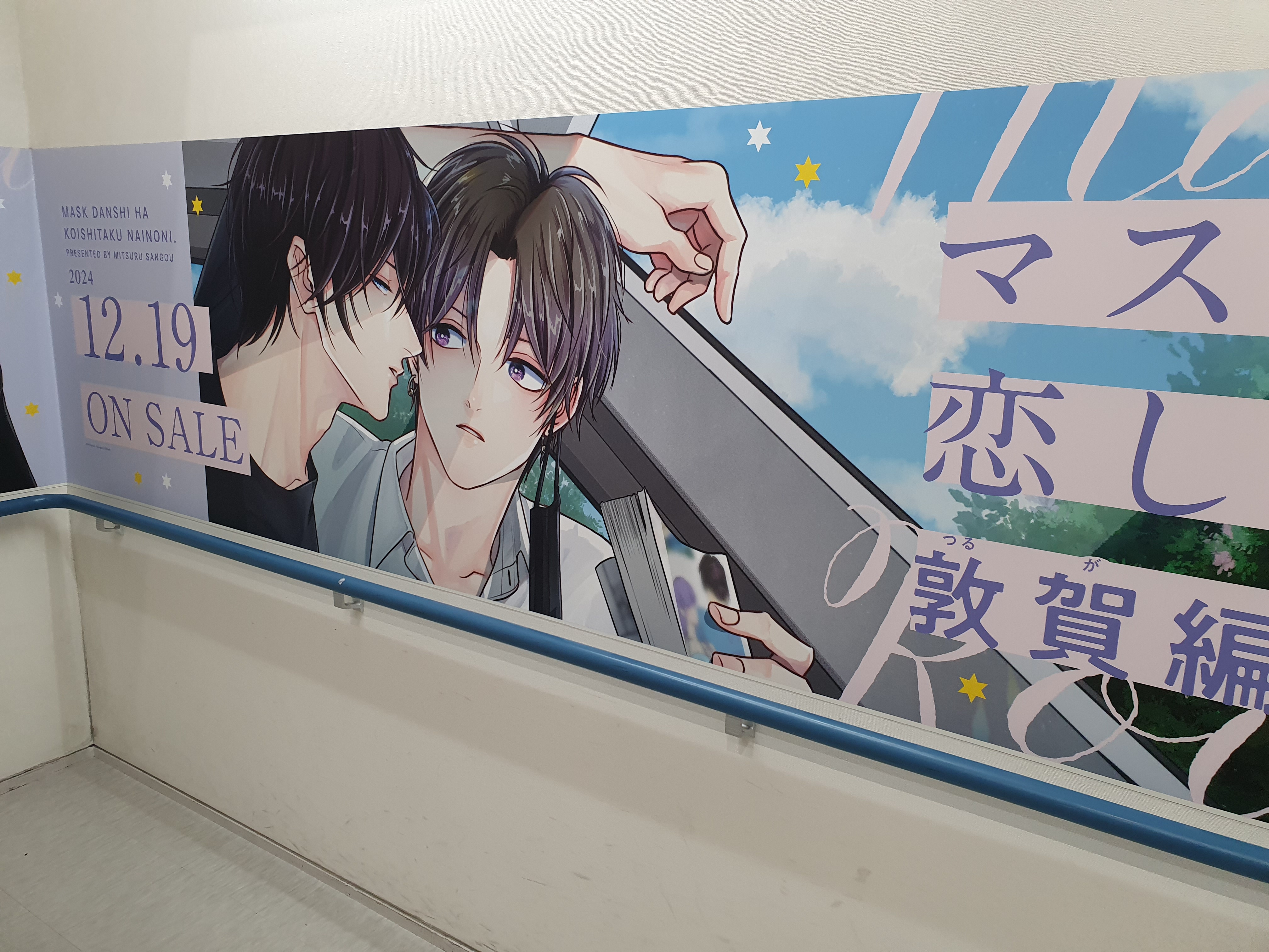 계단에 BL로 추정되는 작품 광고가 붙어있었습니다.